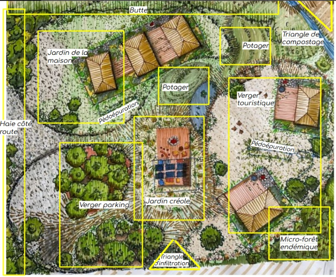 - Transmission de la méthodologie de design en permaculture adaptée au contexte local